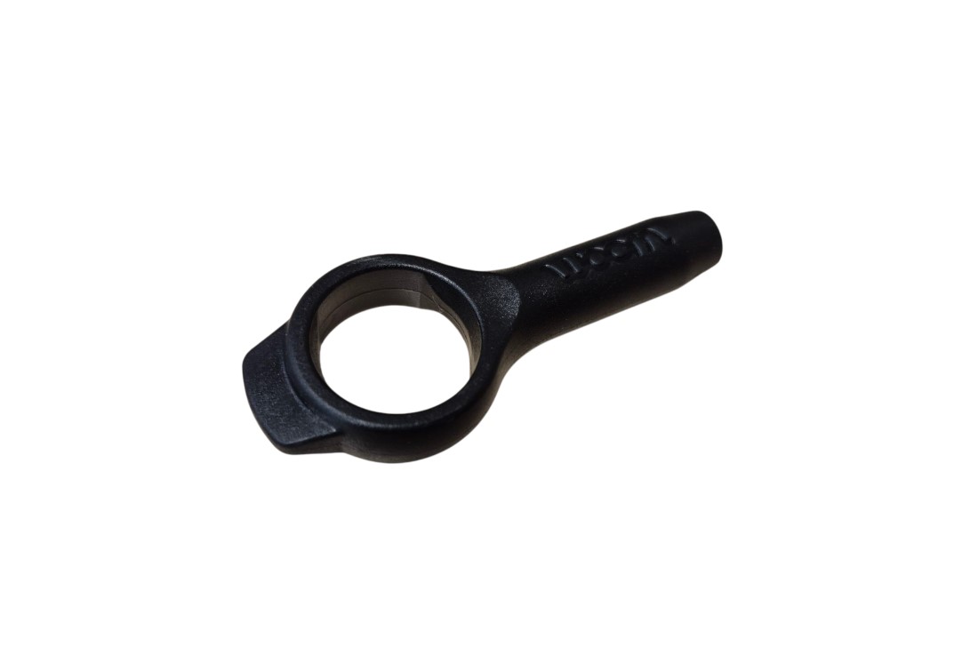 Woom porilaudade kinnitusdetail tagajooksule. Tegemist on vastupidava plastikust rõngagaga, mille sees on metallkeere.